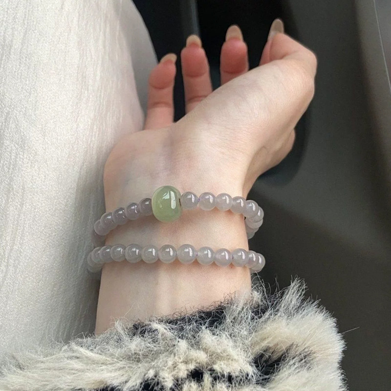 庆祥泰天然和田玉双层叠带小众精致设计烟灰色双圈手链6mmHOT