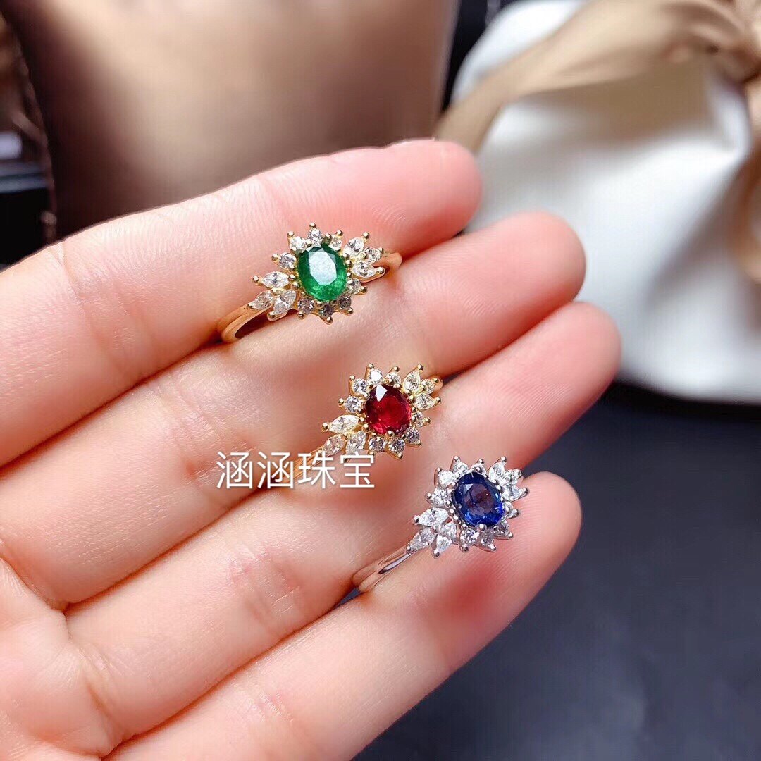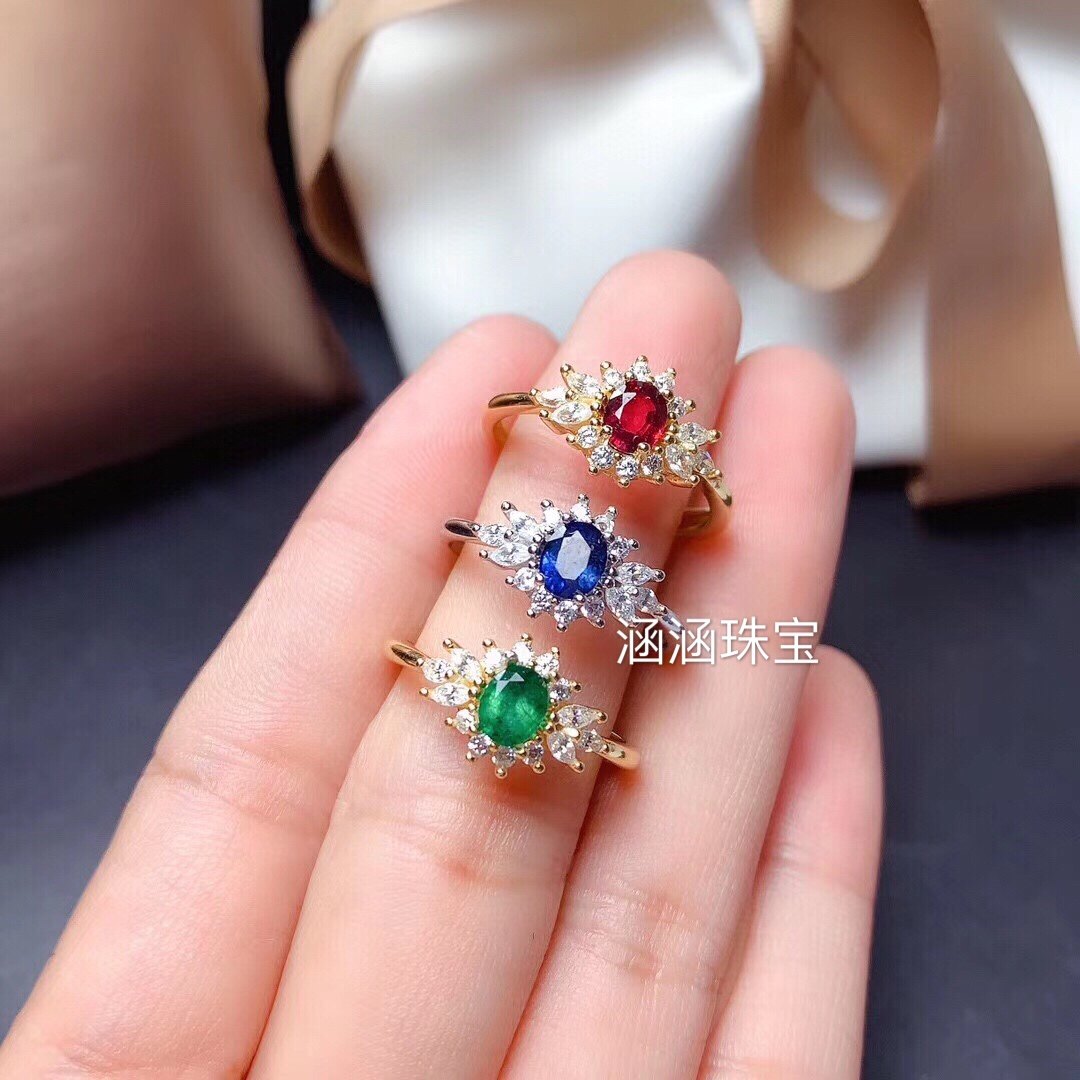 s925银戒指空托椭圆3*4 4*55*76*8mm豪华款 代镶祖母绿红蓝宝石 m