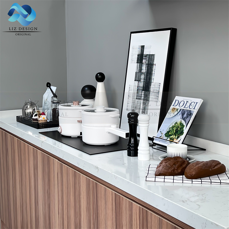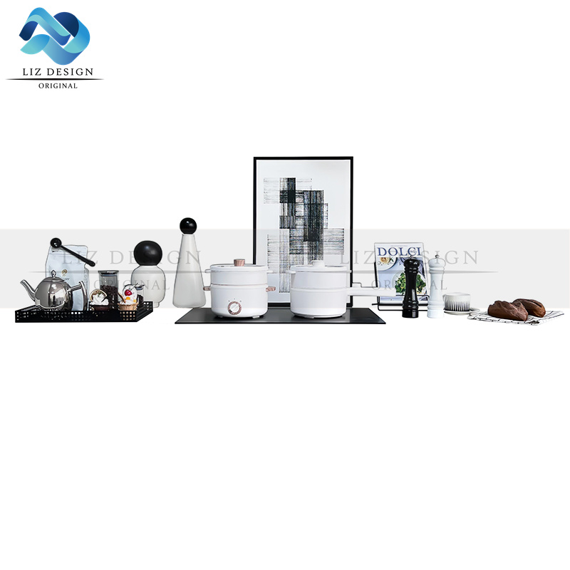 原创样板间厨房摆件现代风格简约摆放饰品托盘组合黑白装饰画软装