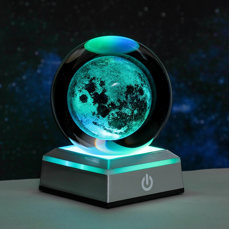 水晶球小夜灯摆件太阳o系月球水母玻璃球桌面装饰品送朋友生日礼