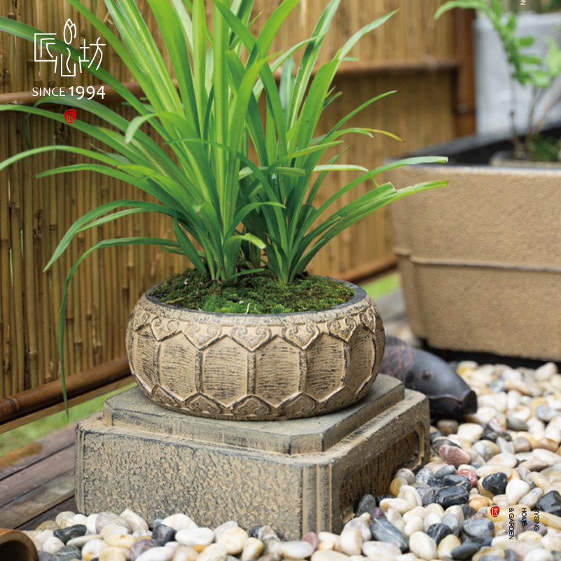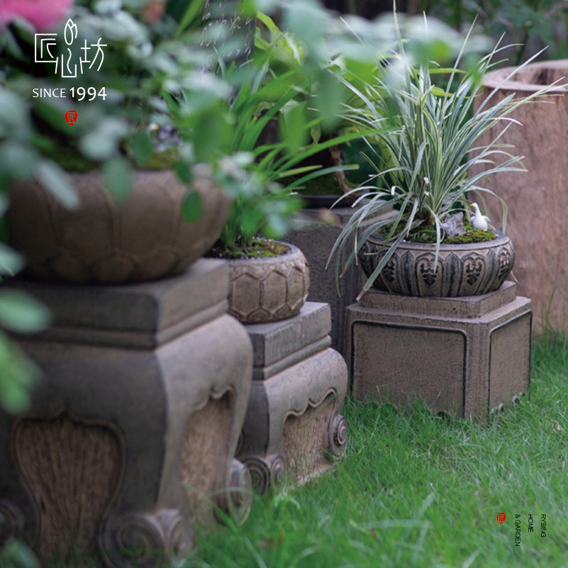 匠心坊户外草坪花园摆件人造石石墩庭院布置小花盆盆栽装饰品