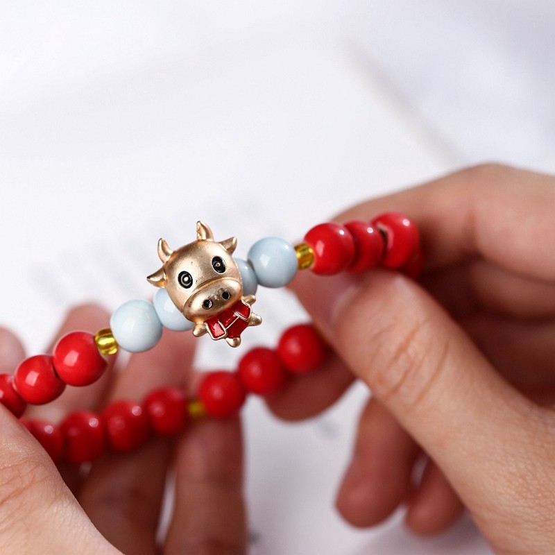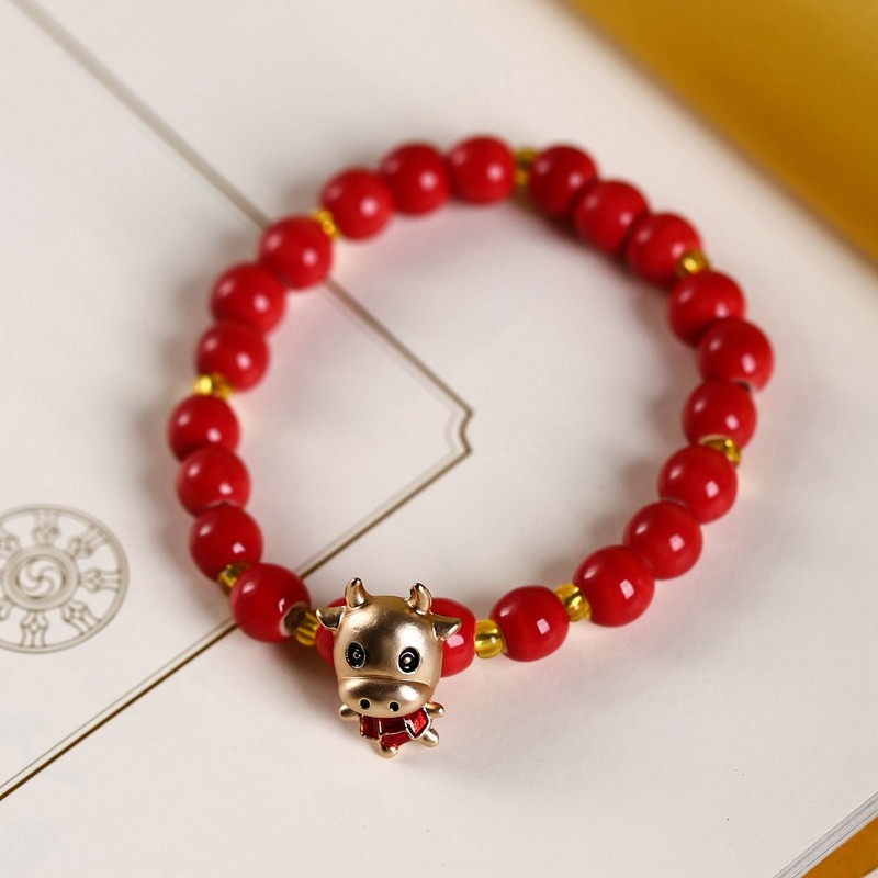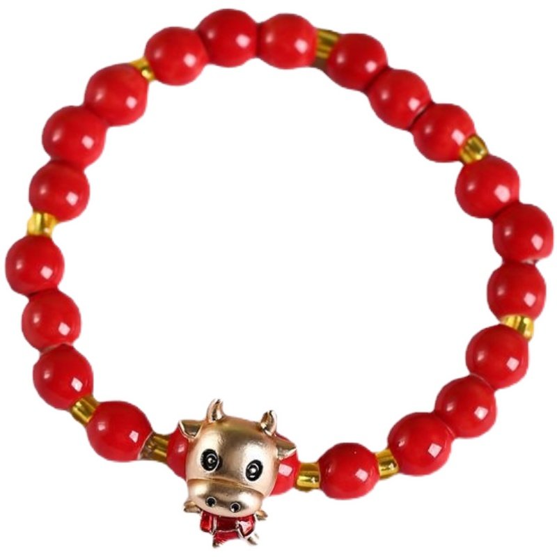 情侣陶瓷饰品红色本命手链生肖牛礼物单圈学生女手串民族风有弹性