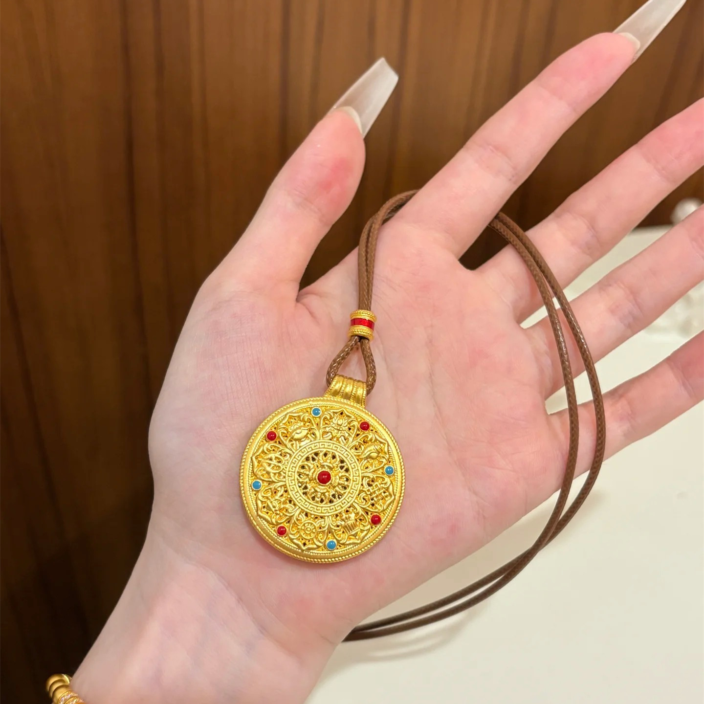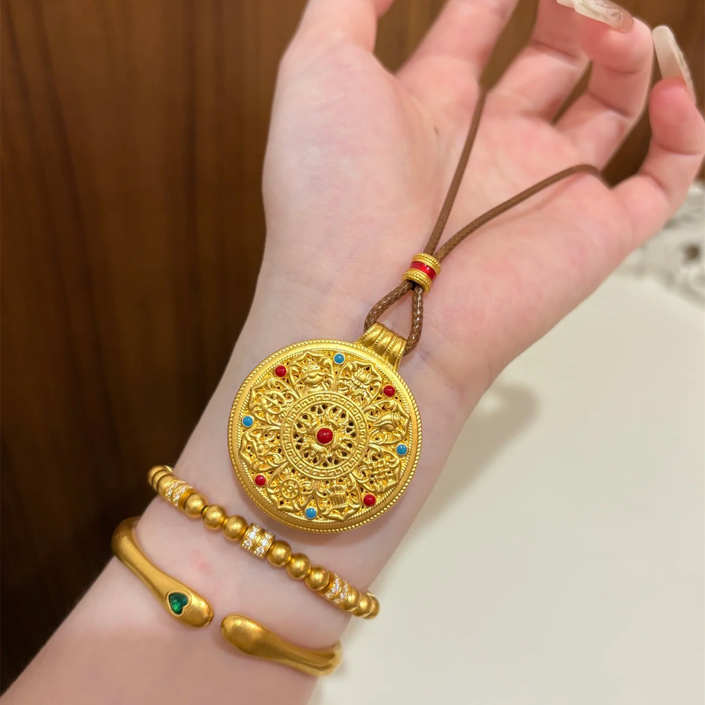 金店同款沙金仿真金珐琅彩绘八宝罗盘吊坠花丝毛衣链送女友礼物