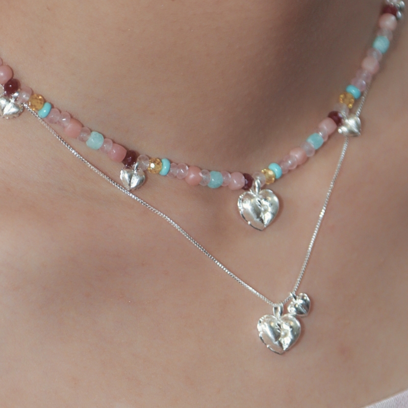 Vary Vase派对系列 可拆卸双气球爱心项链 纯银珍珠原创小众叠戴
