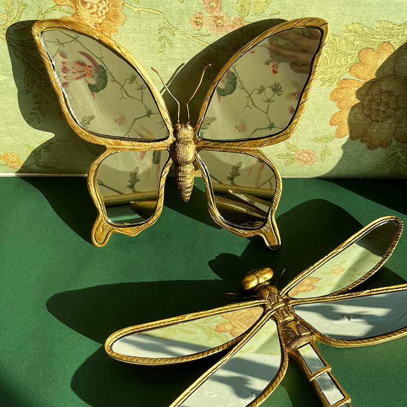 蝴蝶蜻蜓镜面壁挂欧式复古浮雕入户玄关挂画法式创意民宿酒店壁饰