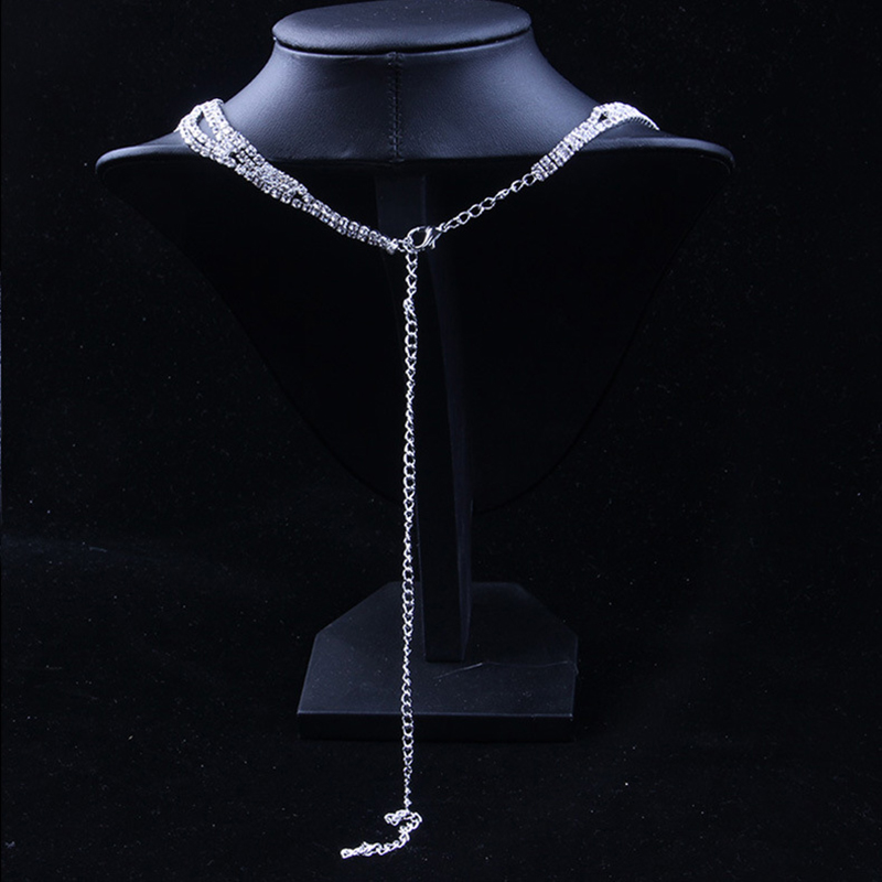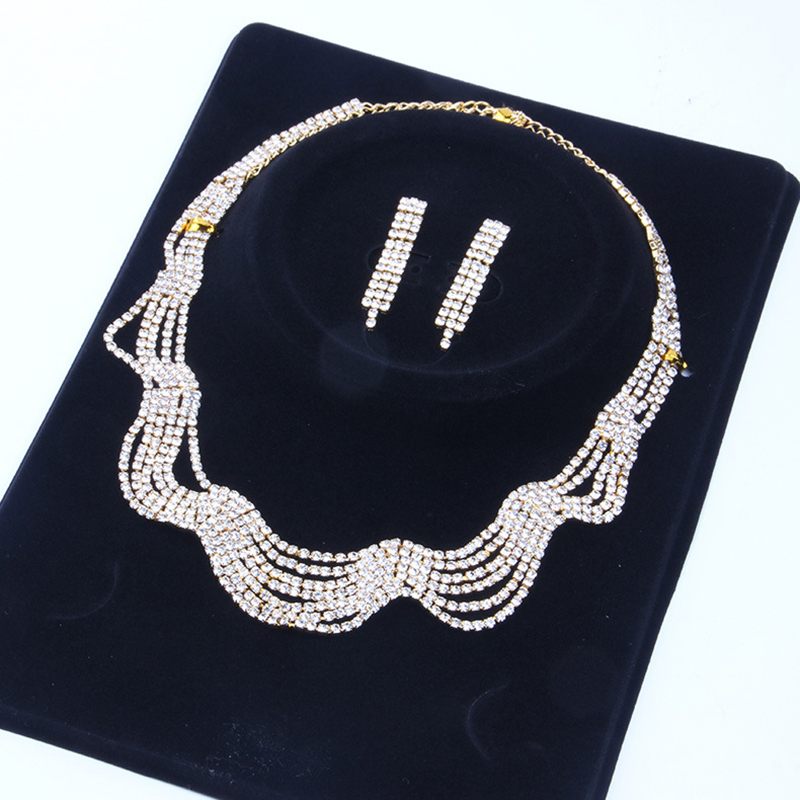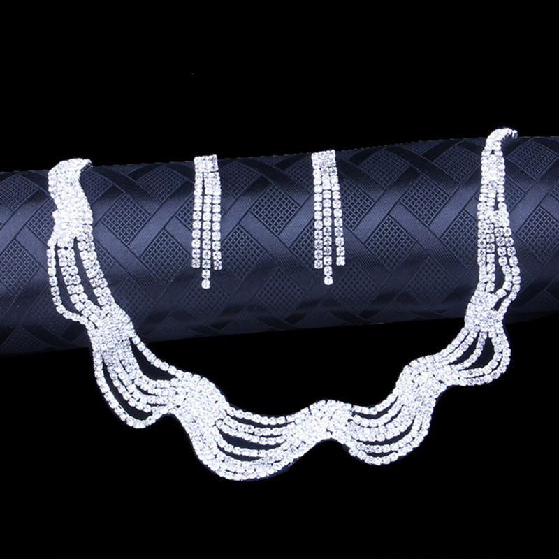 性感显白流苏项链耳环套链女婚纱礼服镶水钻水波链新娘锁骨链饰品