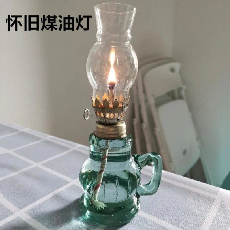 农村老式煤油灯乔迁复古绿色古代煤油灯7080年代供佛灯结婚小夜灯