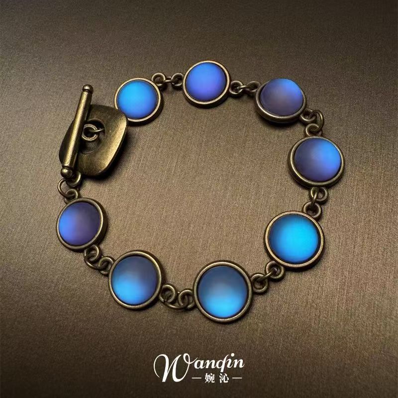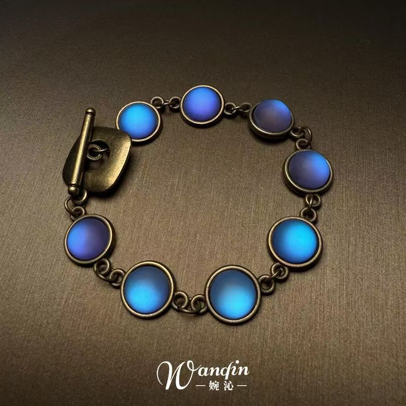 「灵魂共振」复古欧美蓝色系重工手链独特高颜值小众设计感手饰女