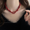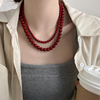 安可拉红色珠珠磁吸扣项链女轻奢气质锁骨链小众高级感颈链毛衣链