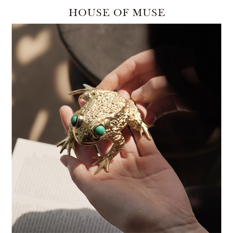 缪斯家真黄铜!"金蟾纳福"孔雀石开运摆件纸镇复古桌面办公室招财