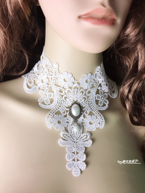 饰品颈带脖子女蕾丝勾花手工服装配饰品黑白色疤痕遮盖假领子颈链