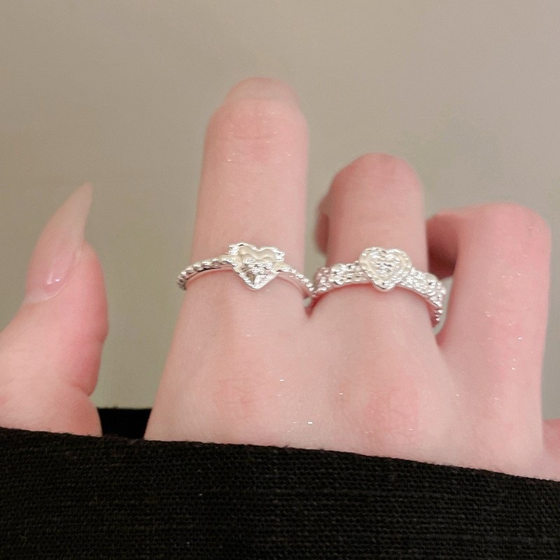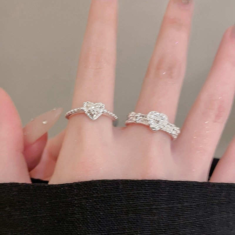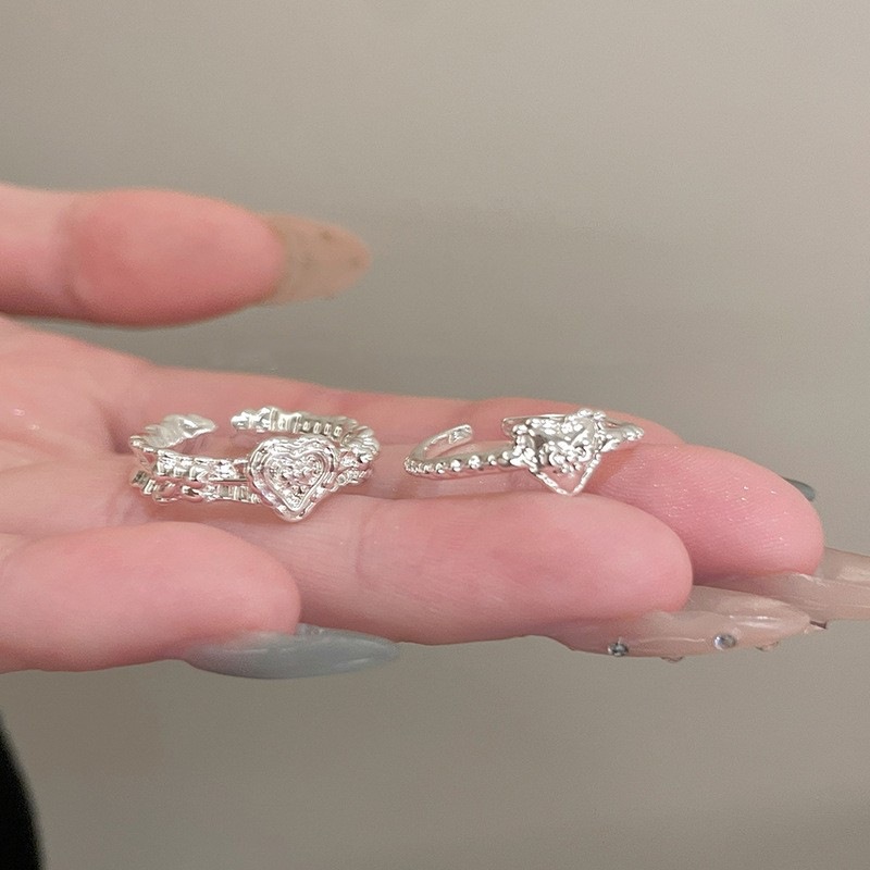 甜美爱心蝴蝶结戒指女叠戴百搭气质几何线条开口指环小众食指戒潮