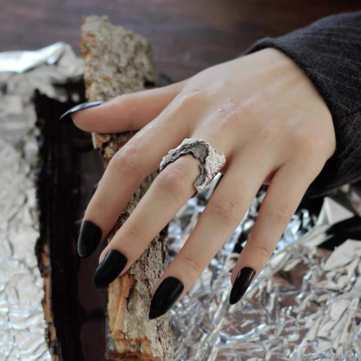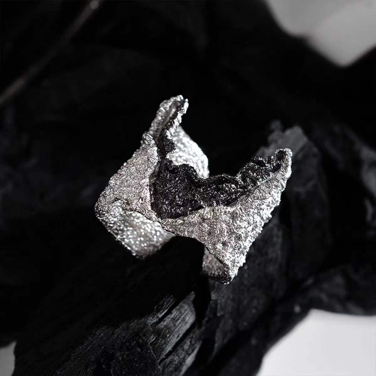 夸张小众戒指重工高级感肌理烧毁指环火山熔岩无性别不规则开口戒