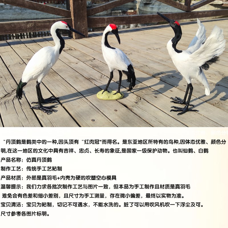 丹顶鹤摆件仿真模型展翅仙鹤模具白鹤白鹭丹顶鹤模U型真羽毛工艺