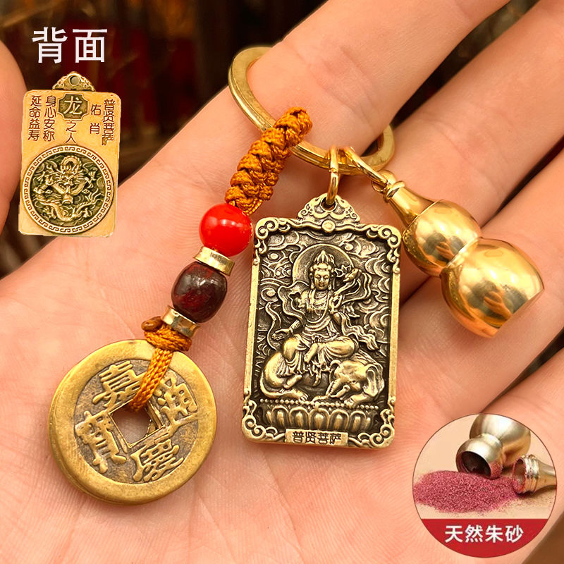 纯黄铜十二生肖守护神2025蛇年本命佛钥匙挂件五帝钱葫芦创意挂饰