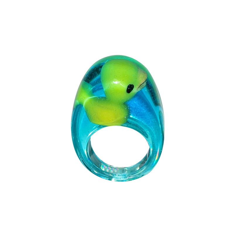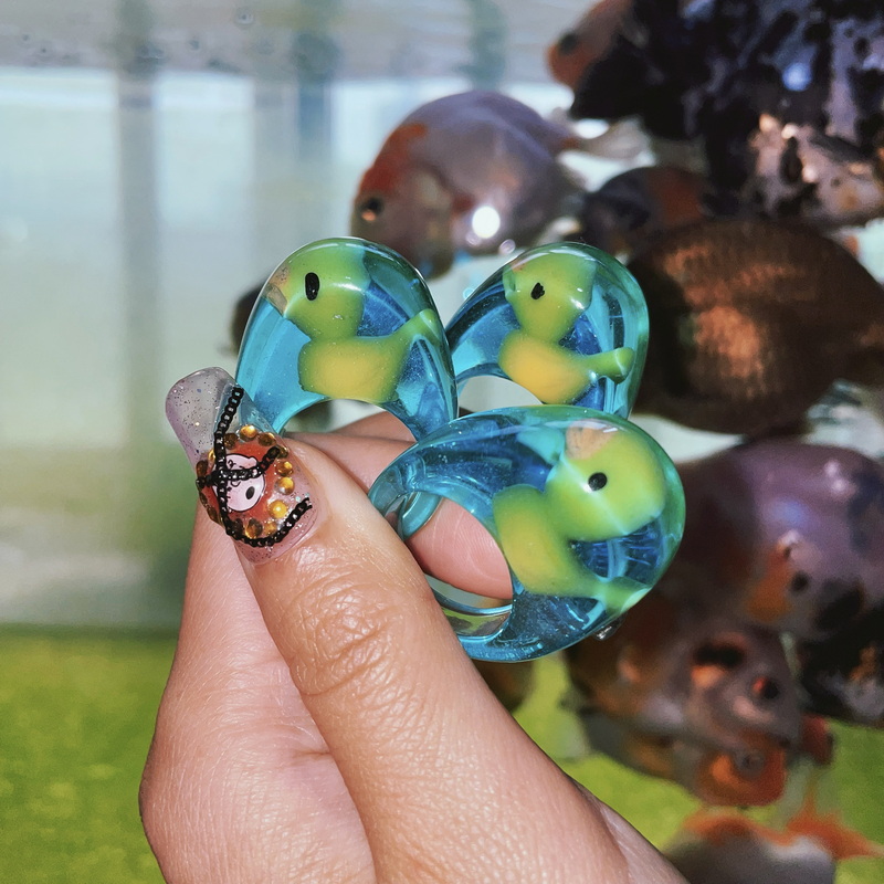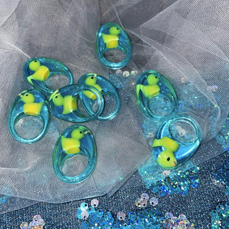 怪力自制 脑洞少女小黄鸭戒指童趣千禧Y2K女孩透明树脂指环 包邮