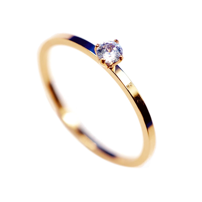 钛钢迷你一颗石秀气戒指女尾戒关节食指环玫瑰金闪亮清新闺蜜韩国