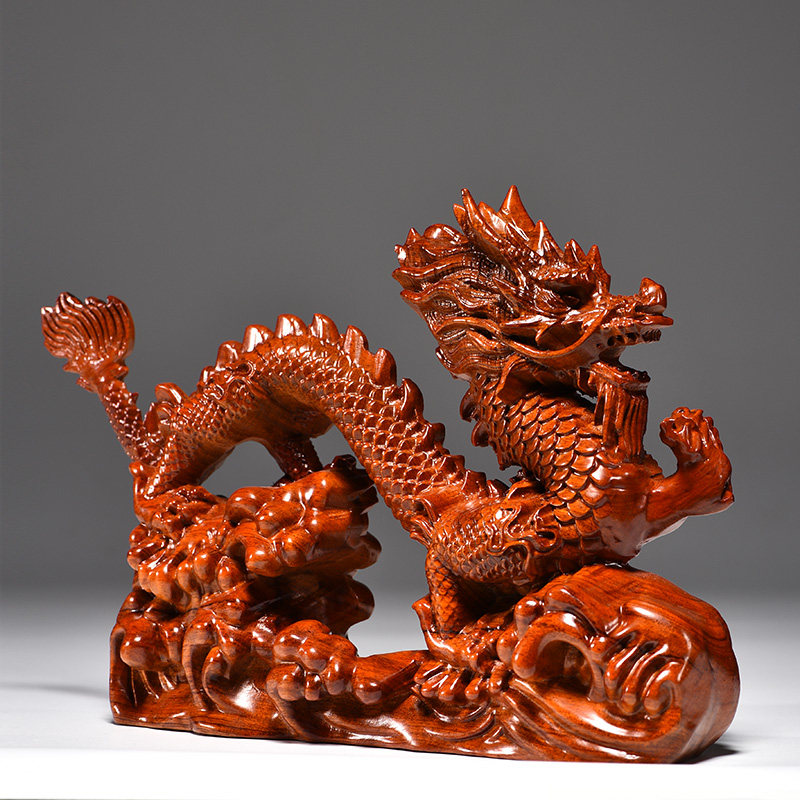 花梨木雕龙摆件实木质生肖龙创意家居客厅桌面装饰工艺品开业送礼