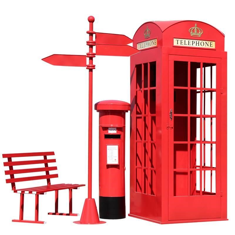 路牌长椅网红店铺装饰落地摆件B覆古铁艺电话亭邮筒摄影道具模型