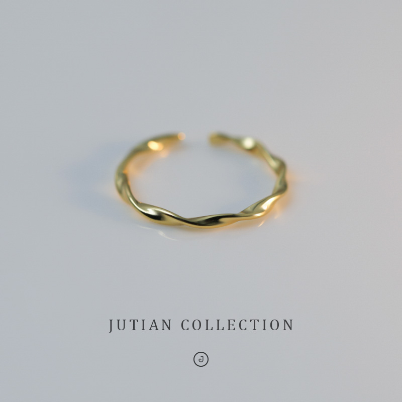 JUTIAN S925纯银戒指波浪扭纹开口尾戒金色细戒 女个性指环关节戒