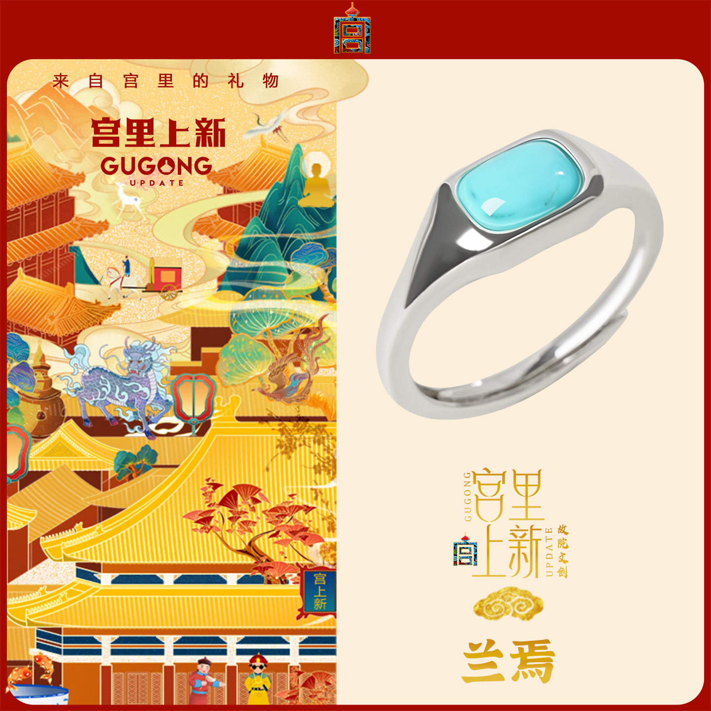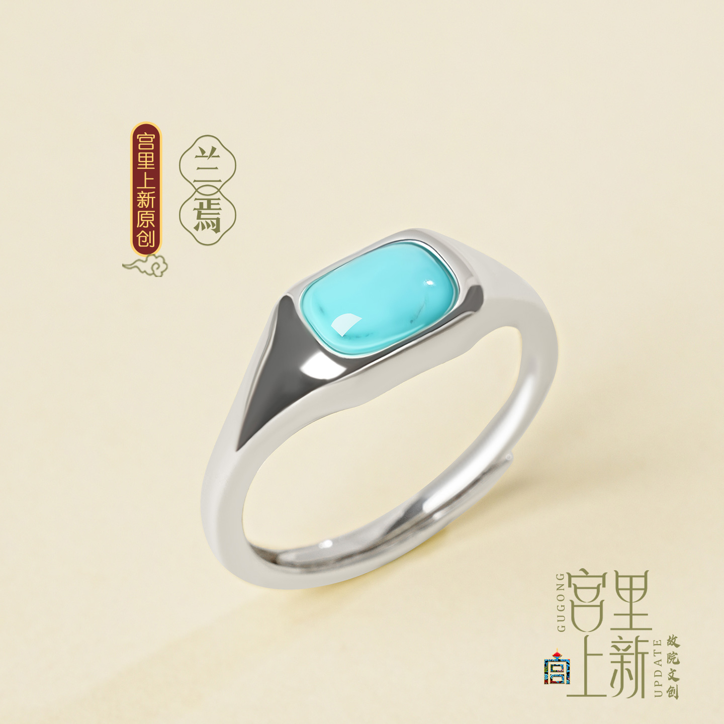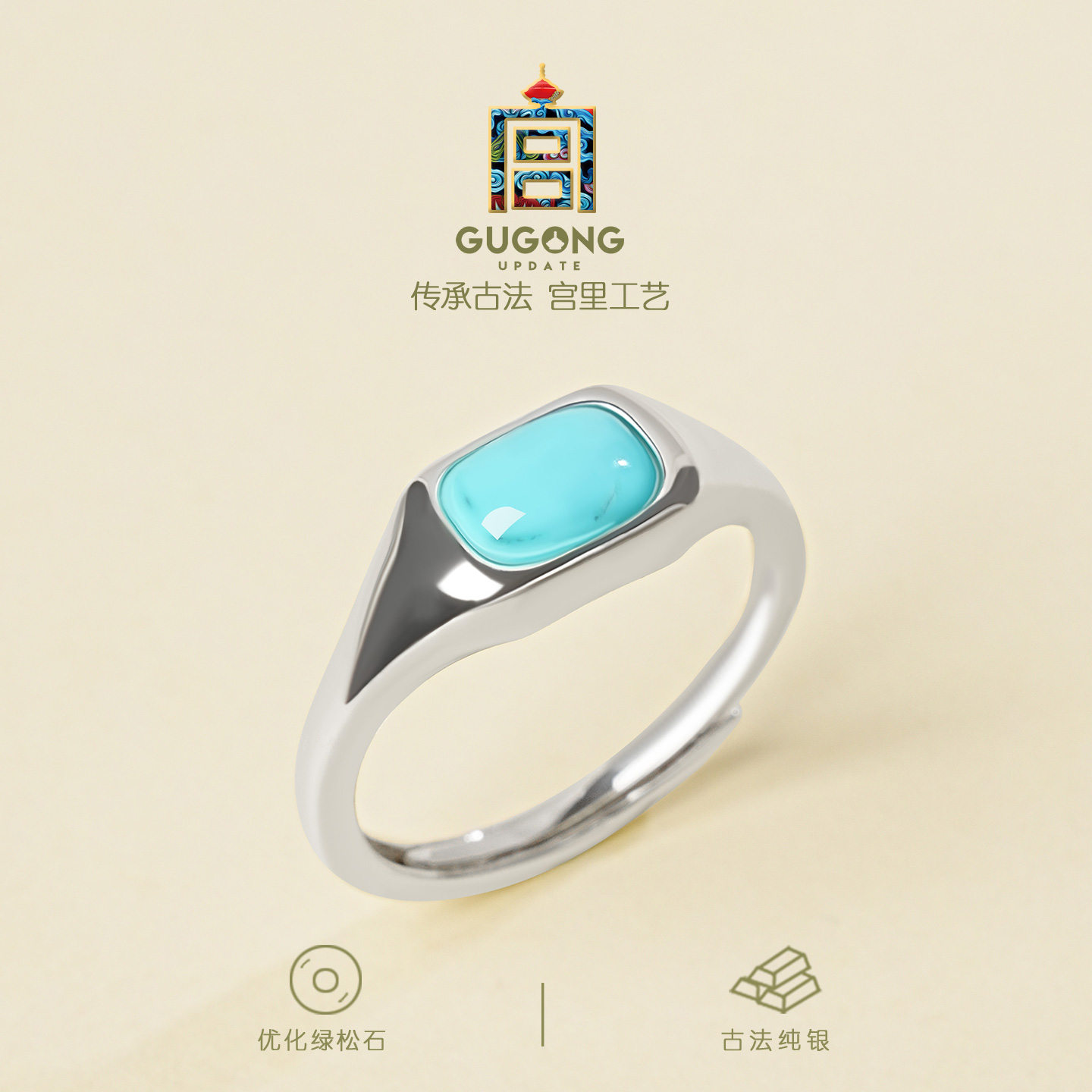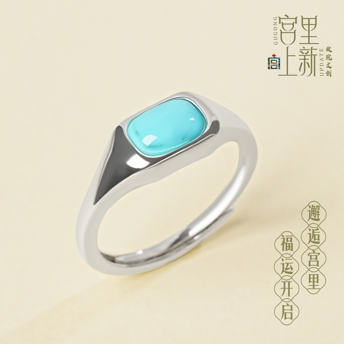 宫里上新绿松石戒指女纯银手饰宝石开口戒指手饰生日礼物送妈妈