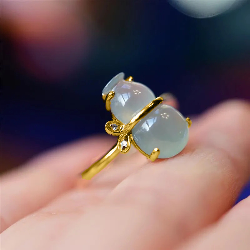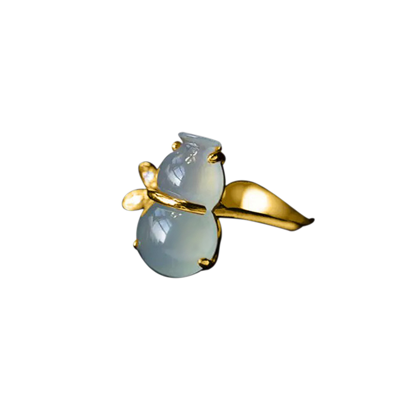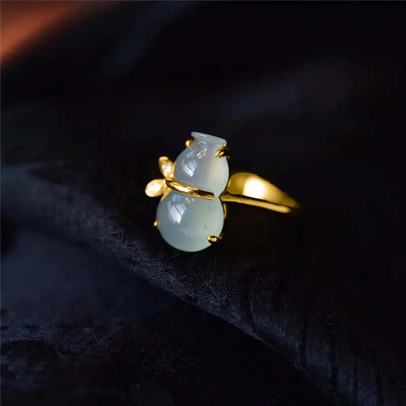 2024款金闪美物s925纯银镶嵌冰种玉髓葫芦轻奢戒指活口招财款指环