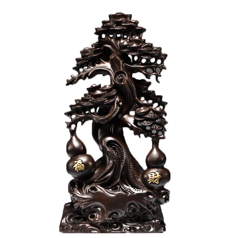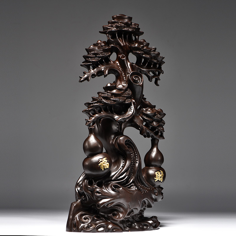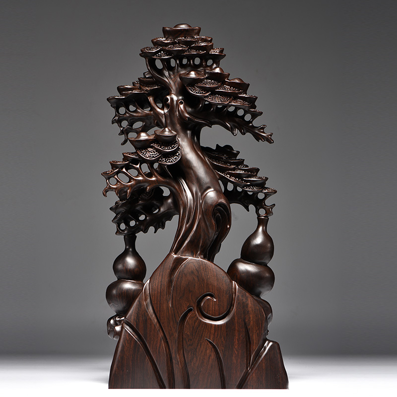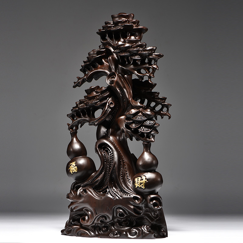黑檀木雕树摆件摇钱树实木店铺开业乔迁送礼家居客厅装饰红木摆设