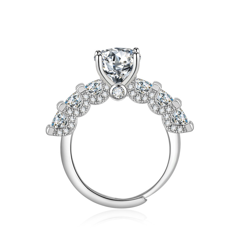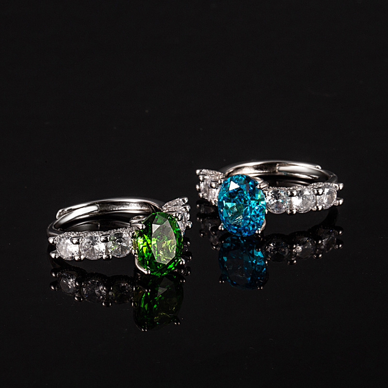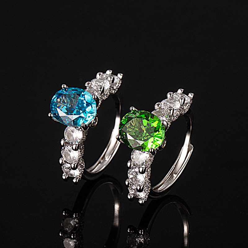 奢华高端设计新款冰花切戒指女紫色高碳钻椭圆形指环饰品精致百搭