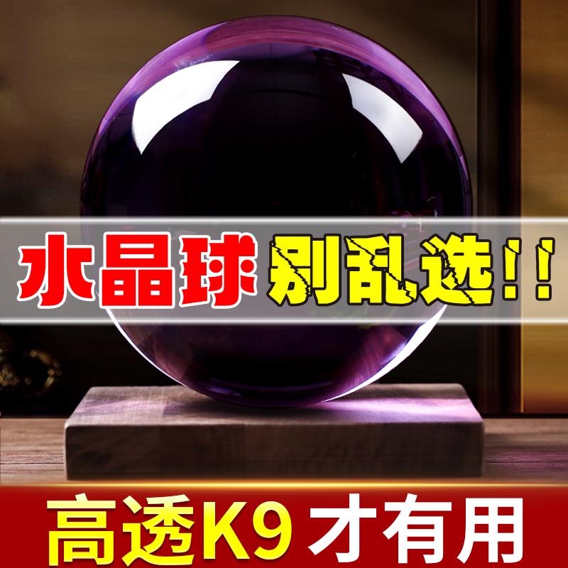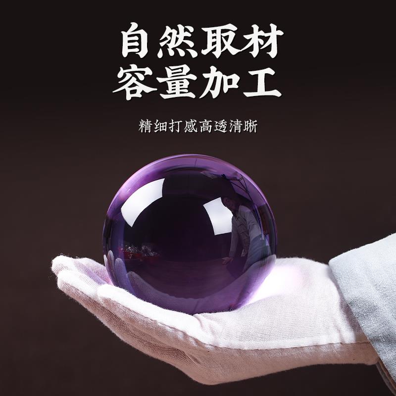 紫色水晶球摆件招聚大号玻璃球旋转底座玄关客厅办公室书房装饰品