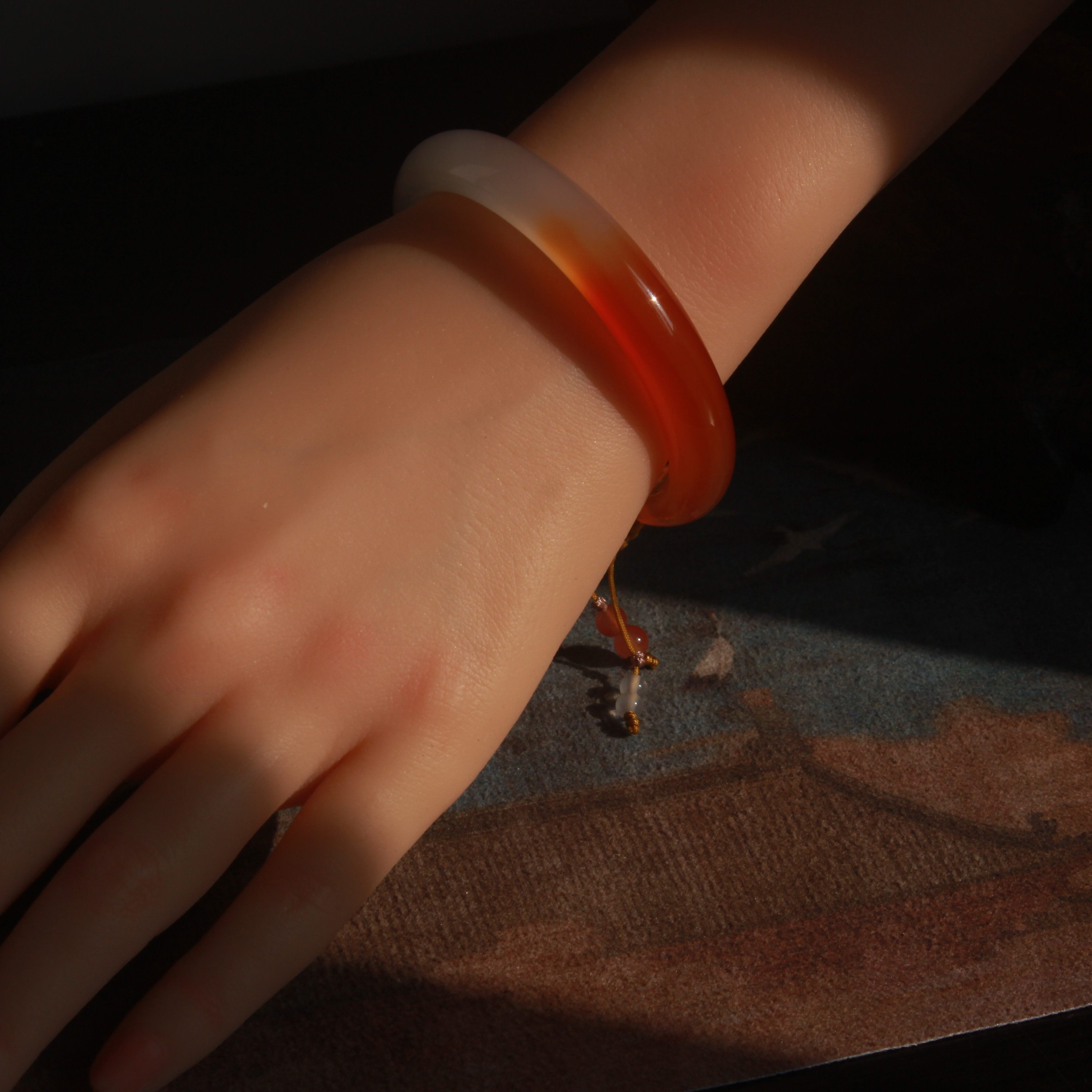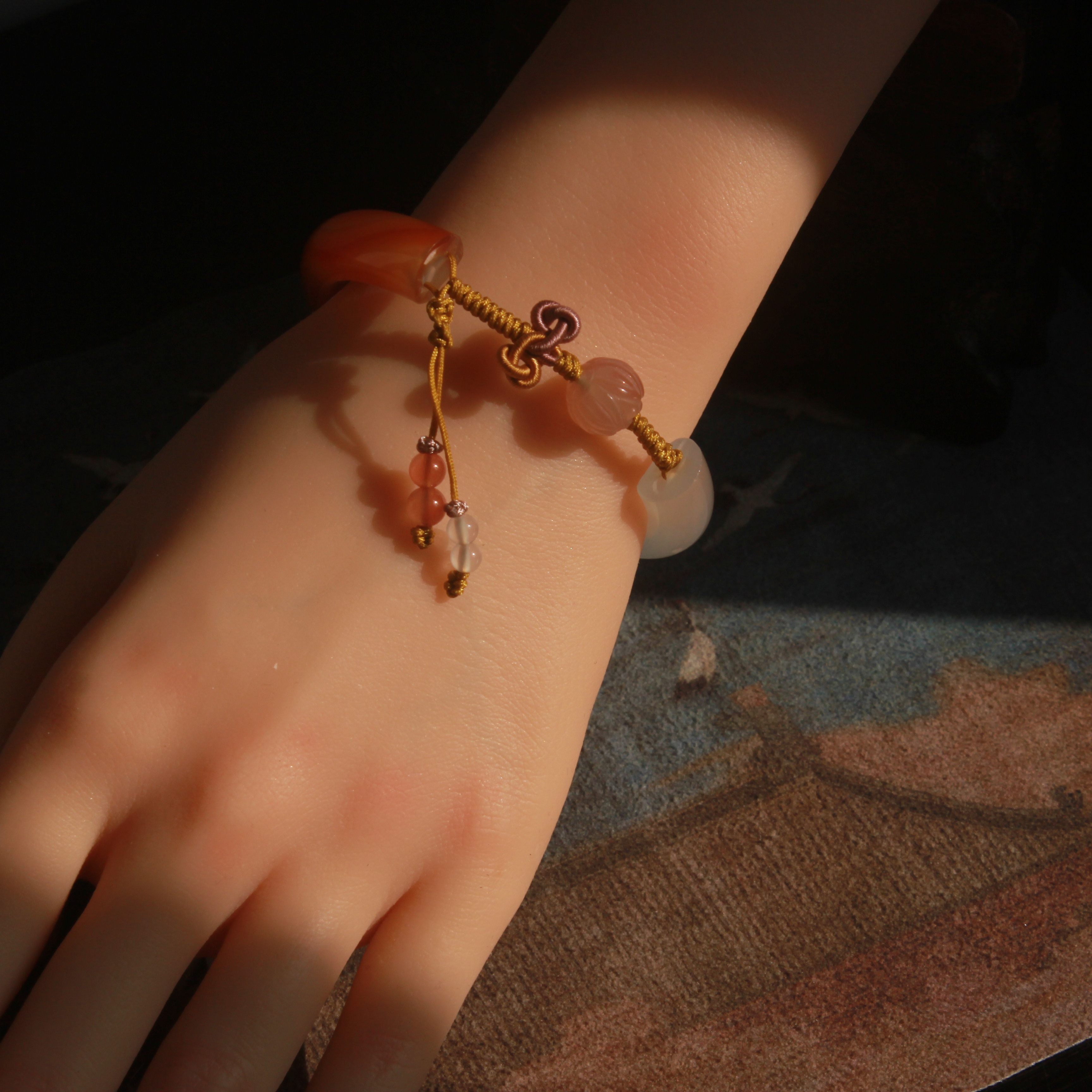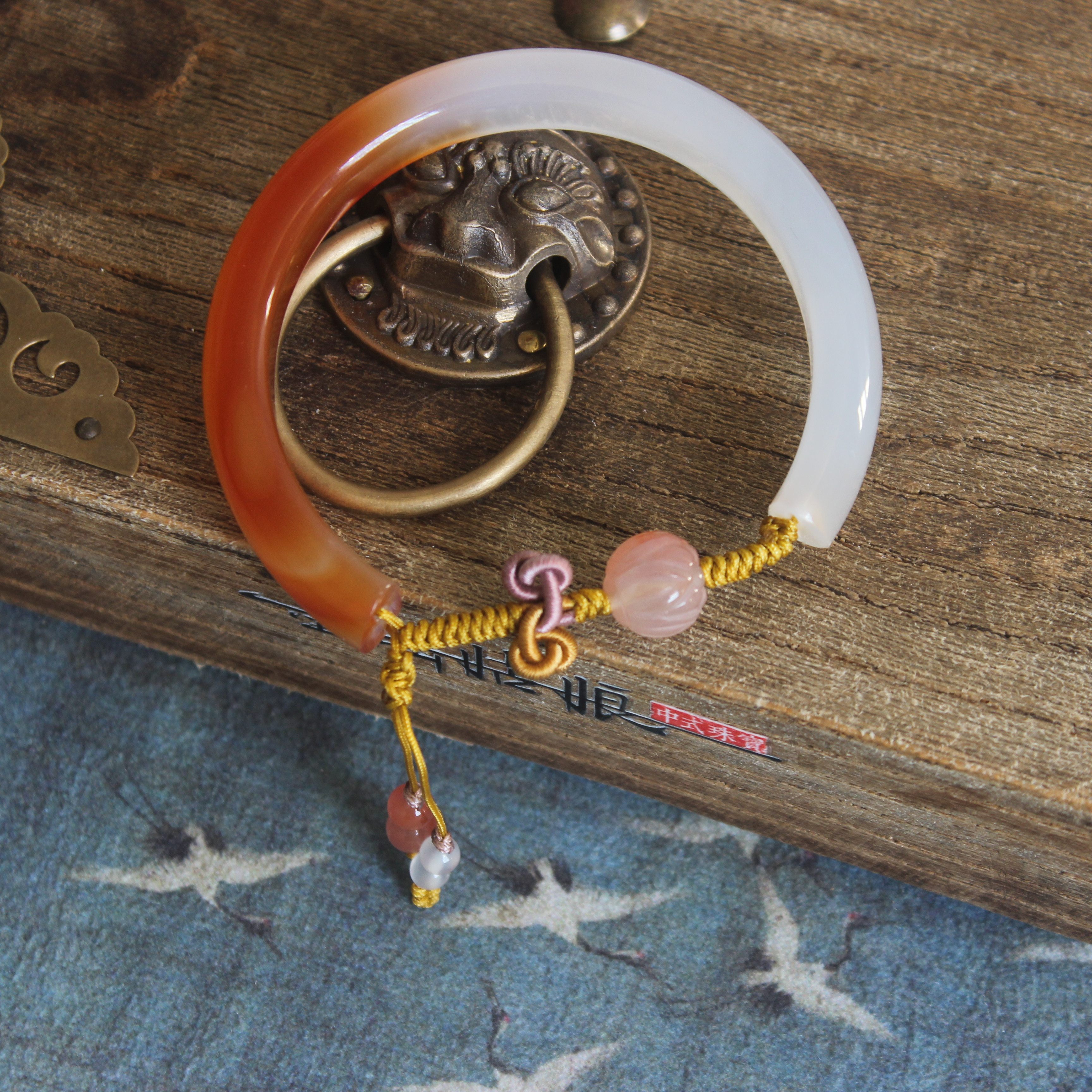 原创古风轻奢天然玛瑙手镯新中式半壁江山手工编绳多宝半镯半链女