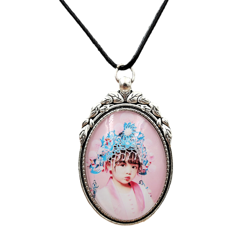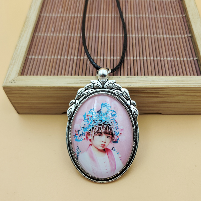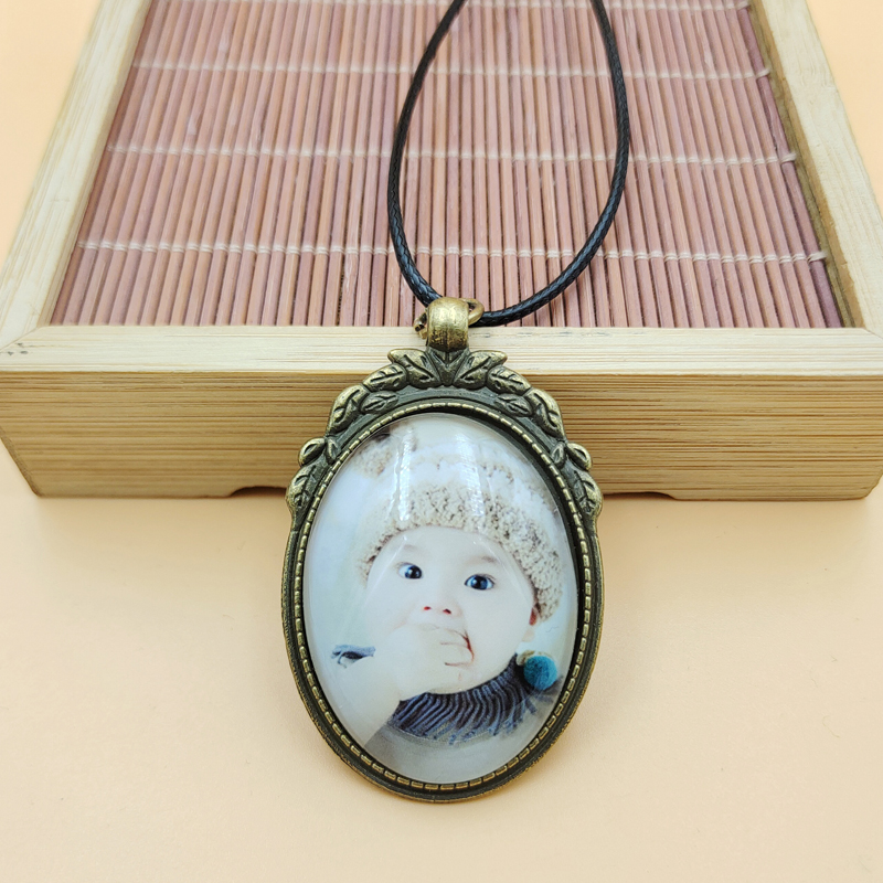 麦秆穗椭圆形银色照片项链吊坠复古金属DIY个性定制图片情侣儿童