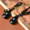 彩眼黑曜石葫芦吊坠男女项链金曜石福禄小葫芦汽车钥匙扣挂件配饰