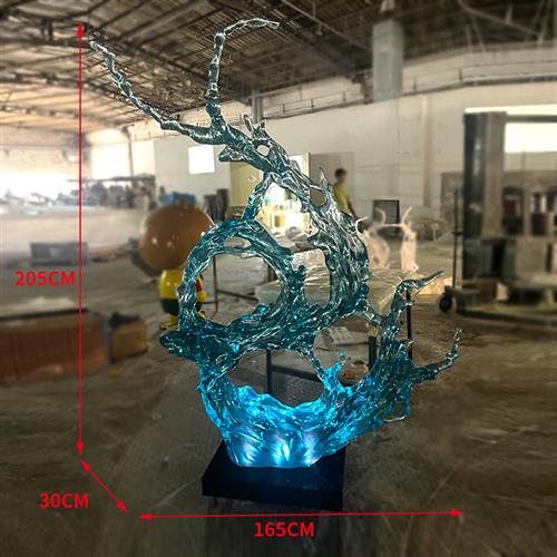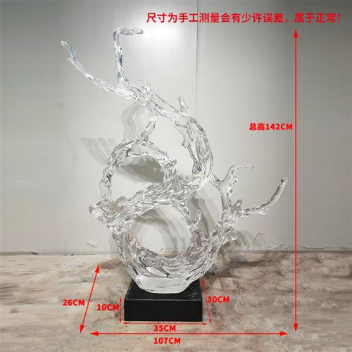 酒店大堂轻奢透明浪花树脂摆件样品屋展示中心样板间落地雕塑软装