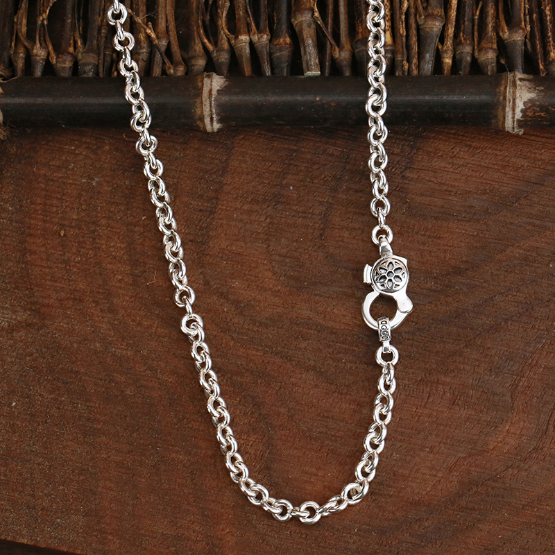 牛钝精工good art樱花扣项链925纯银加粗6mm手工复刻复古潮流银饰