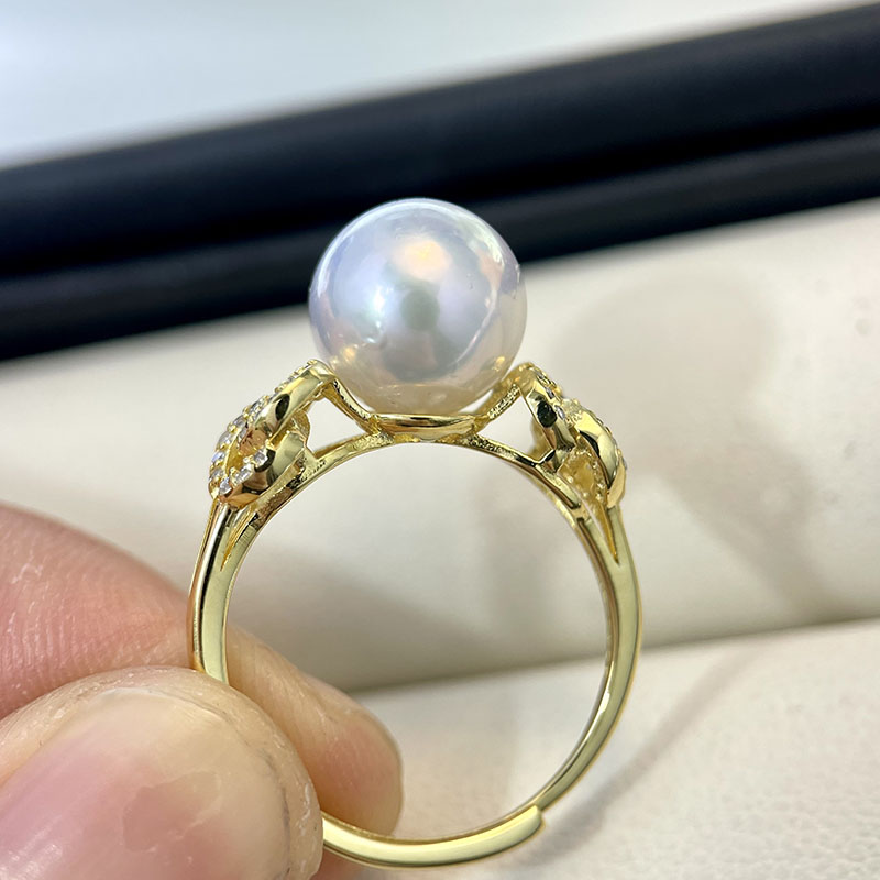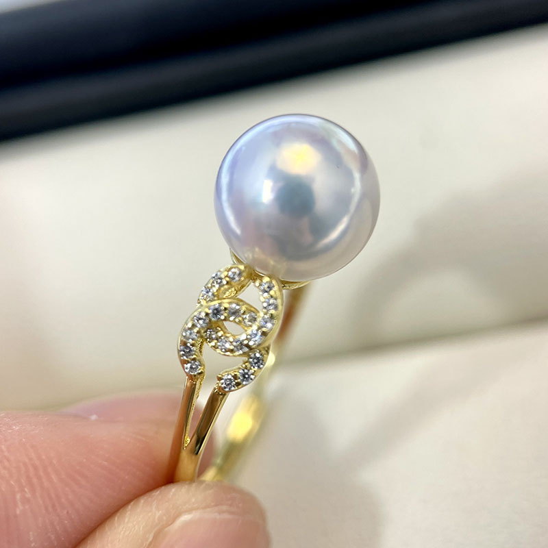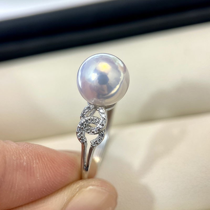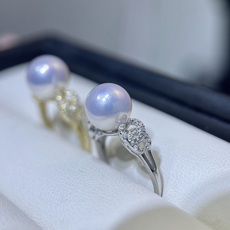 DIY珍珠配件 S925纯银精镶锆石小香风珍珠戒指空托时尚气质指环