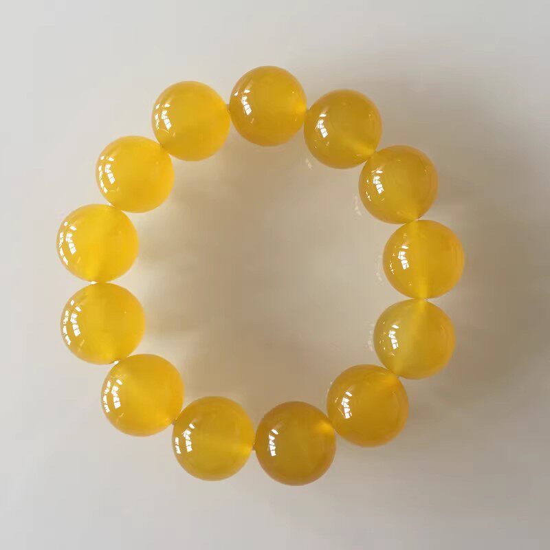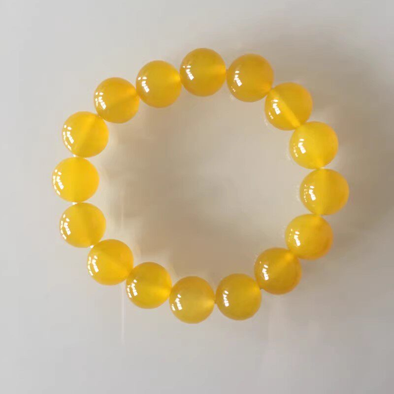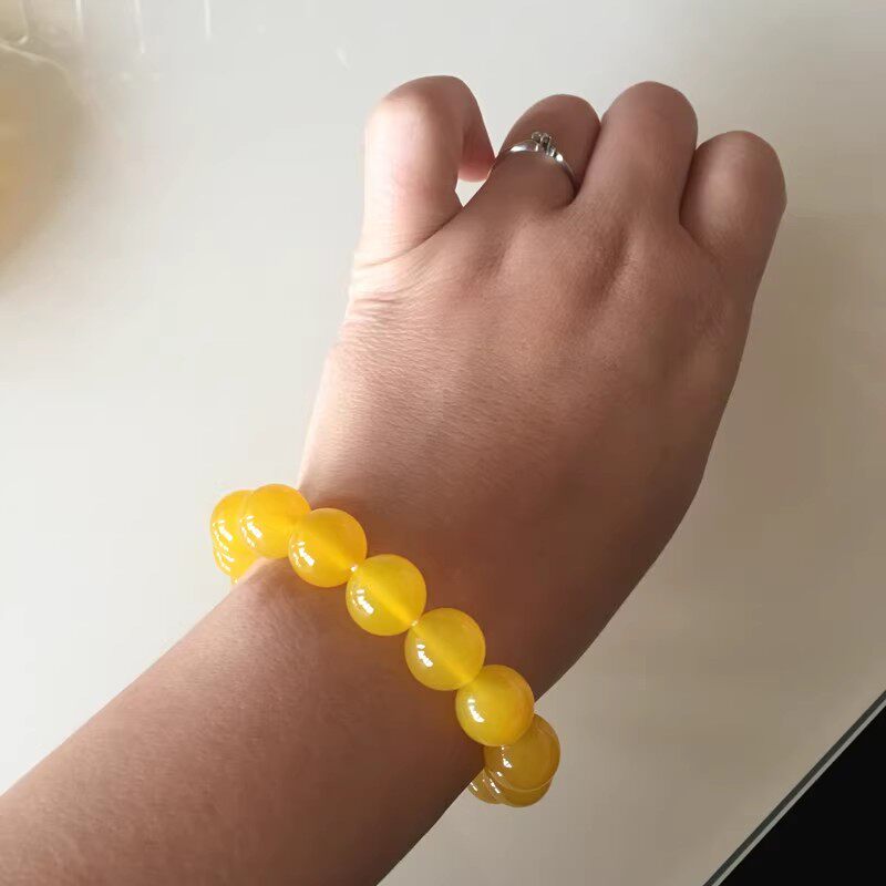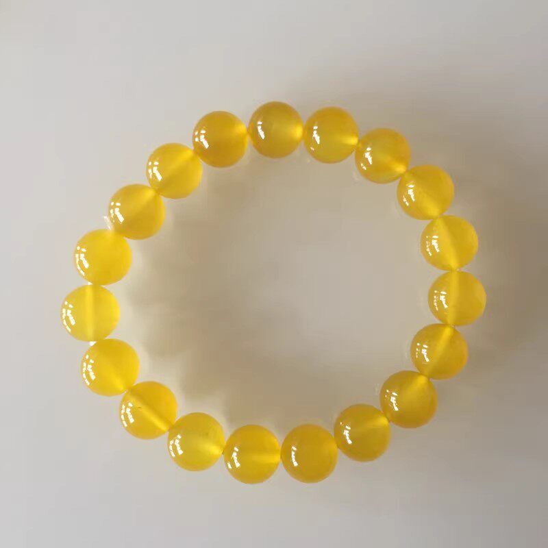 天然玉石金丝玉玛瑙黄色手链冰种水晶圆珠手串男女情侣时尚首饰品