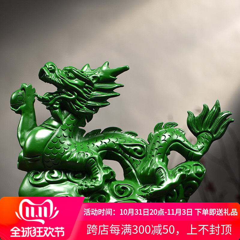 绿色木头龙摆件实木质十二生肖木雕龙客厅装饰新居开业送礼工艺品