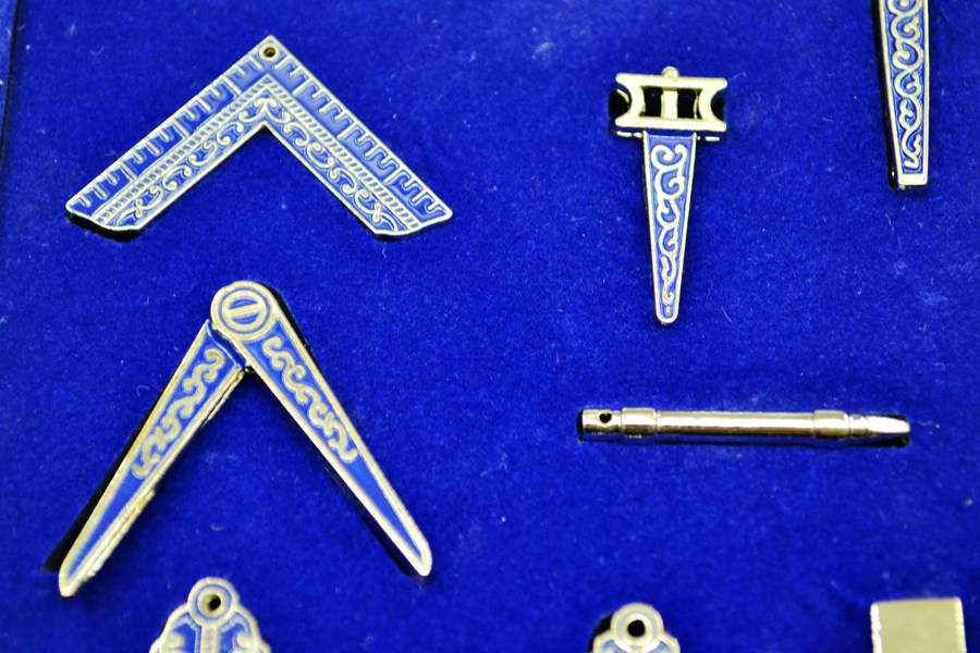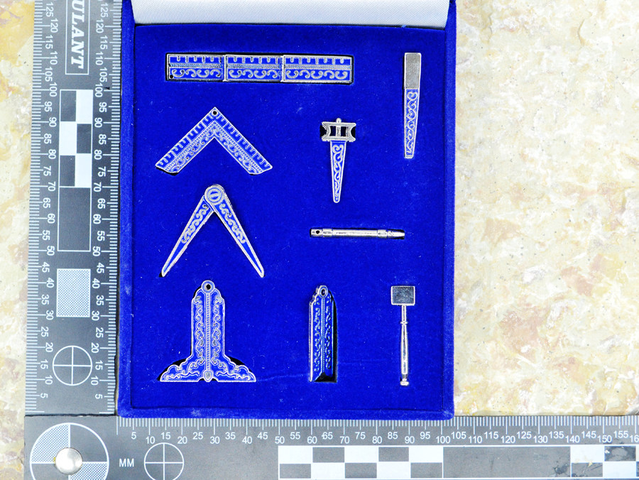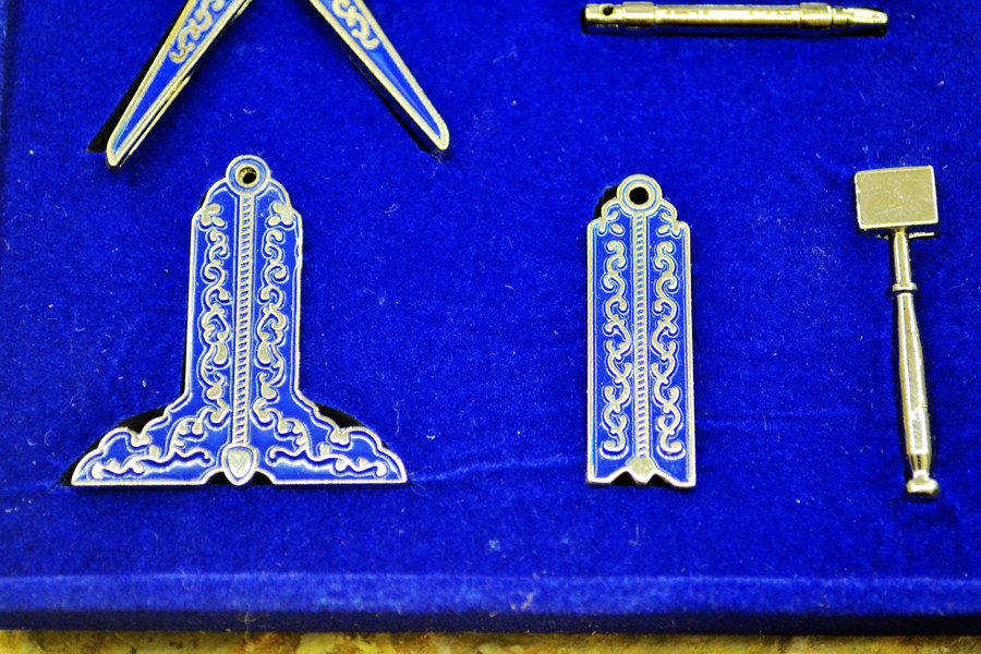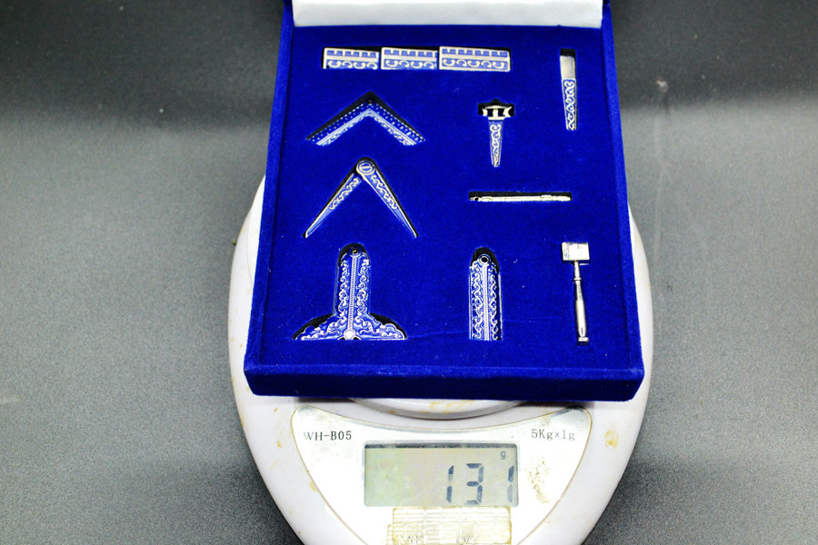 Freemasonry共济会会员石匠工具九件套高档绒布纪念礼盒 金属摆件