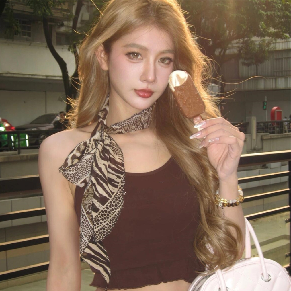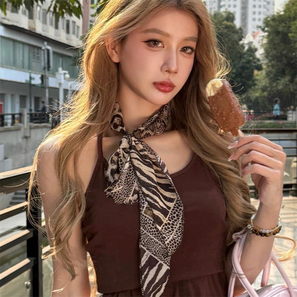 zoozmomo豹纹玫瑰花丝巾女新款复古辣妹领巾y2k千禧风发带围巾潮