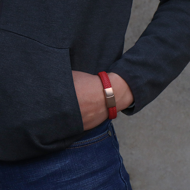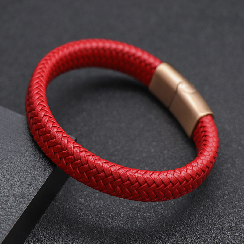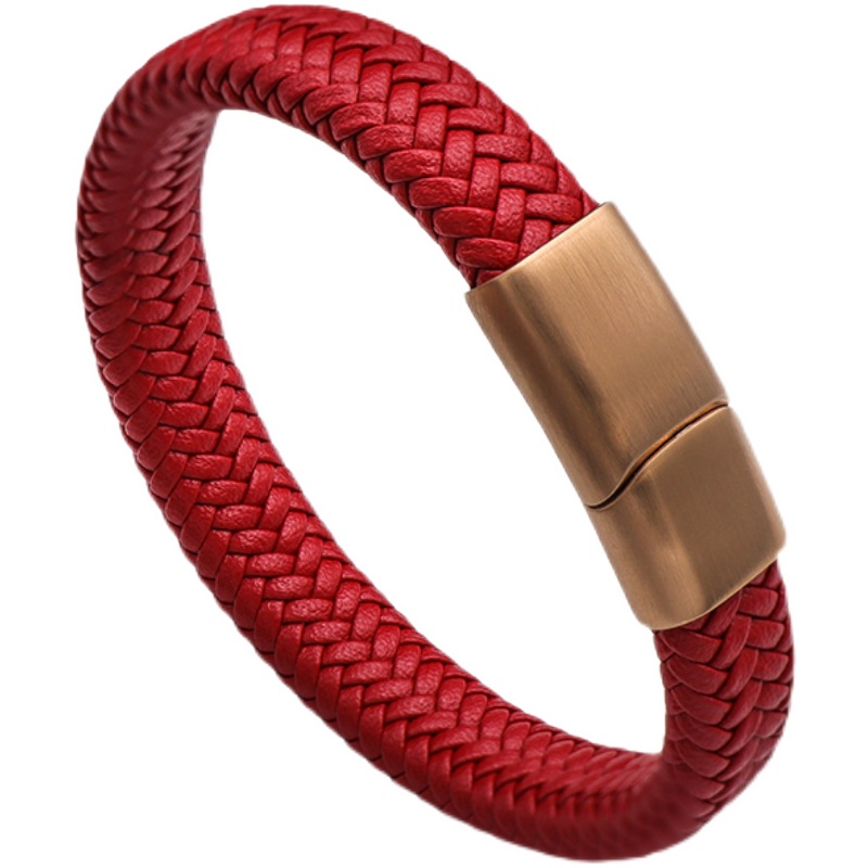 时尚民族风红色皮绳编织手链男女情侣本命年礼物手环个性定制刻字