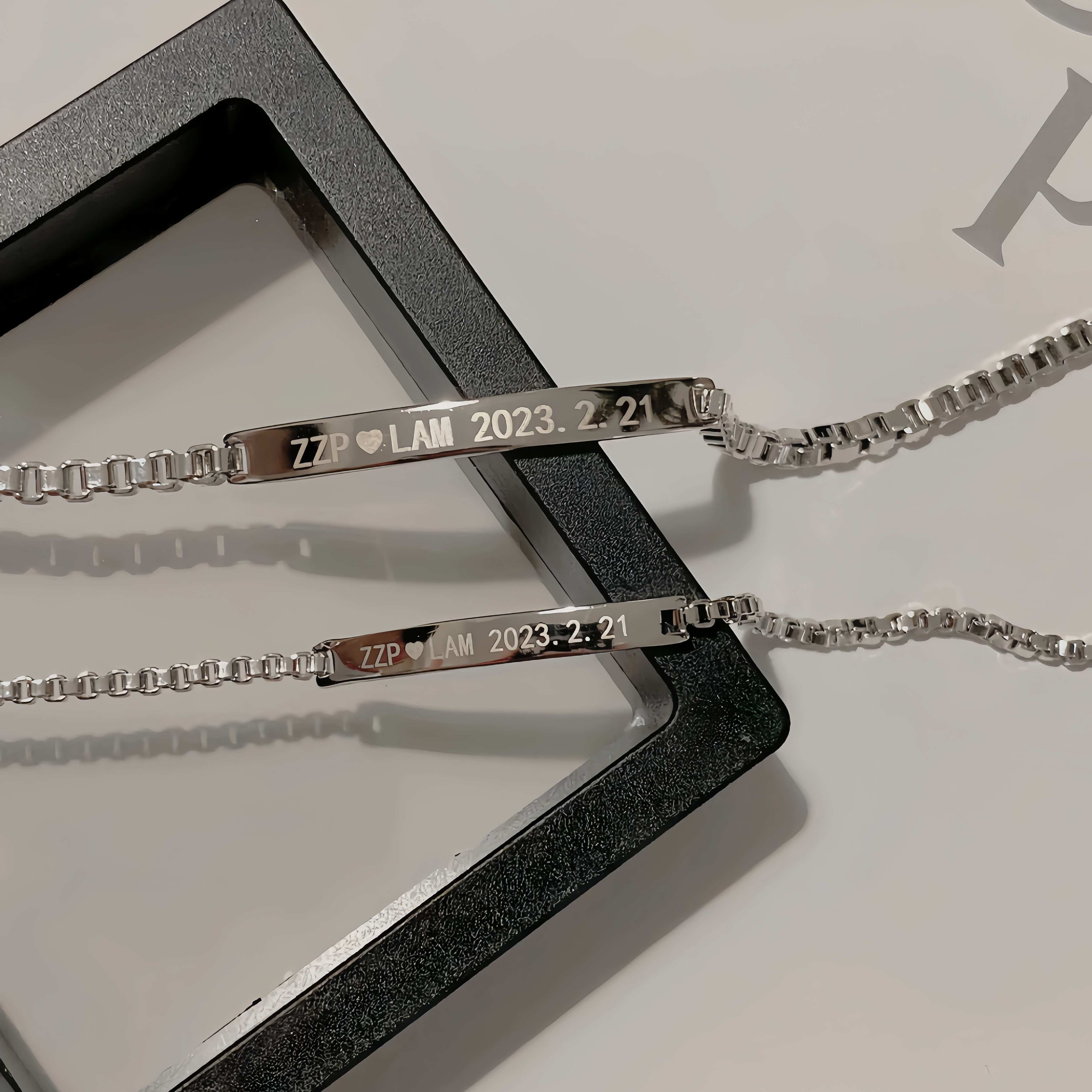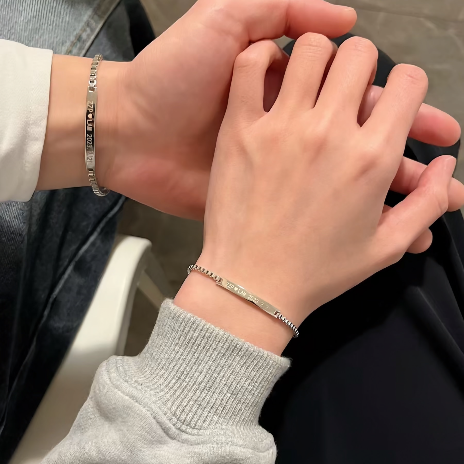 纯银情侣手链一对可刻字定制男女生团队纪念意义定情异地生日礼物