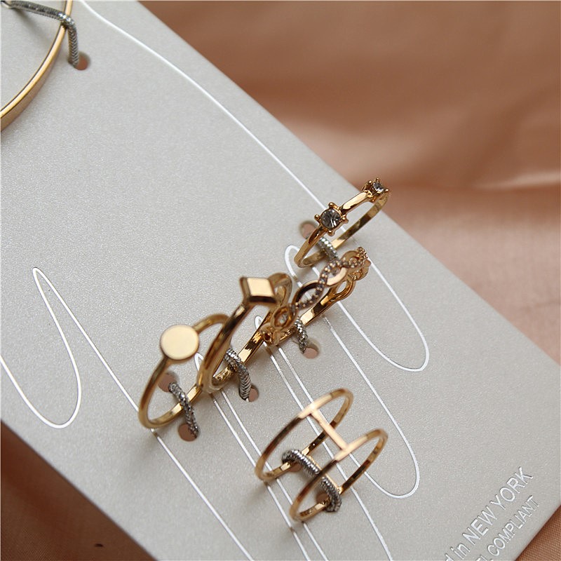 日韩风格新款套装戒指手镯一套饰品简约大气金属镀金镶水钻女F-62