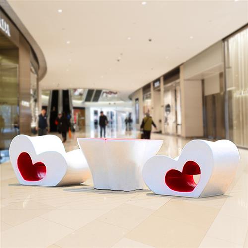 玻璃钢爱心座椅雕塑公园林景观爱情主题桌椅摆件商场甜品店装饰品
