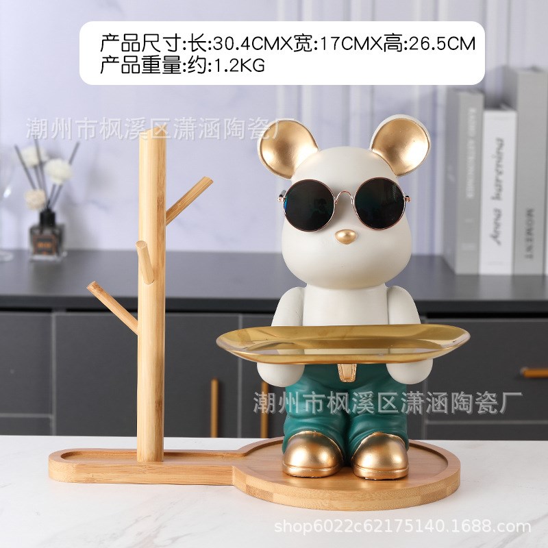 创意网红熊入门口玄关钥匙收纳摆件家居客L厅鞋柜装饰品储钱罐礼