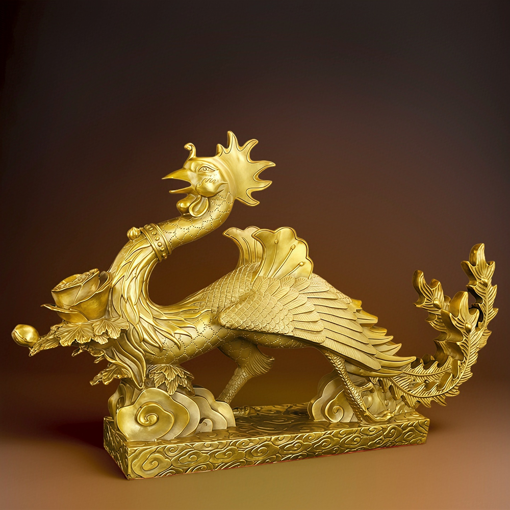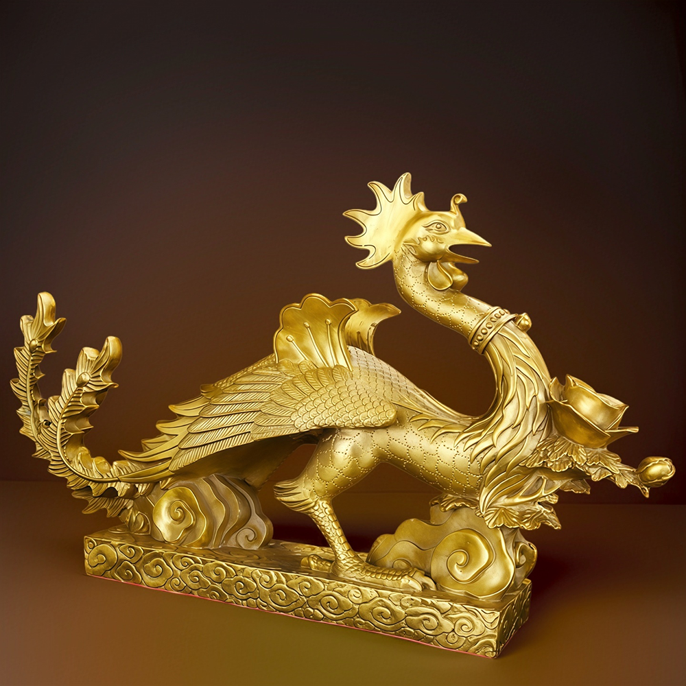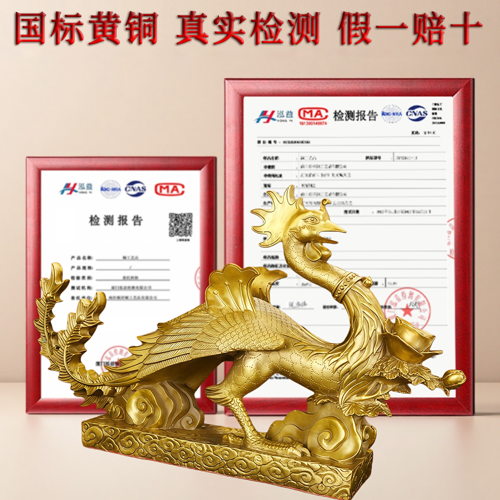 黄铜凤凰摆件招财龙凤呈祥工艺品吉祥结婚礼品汉凤办公桌装饰中式