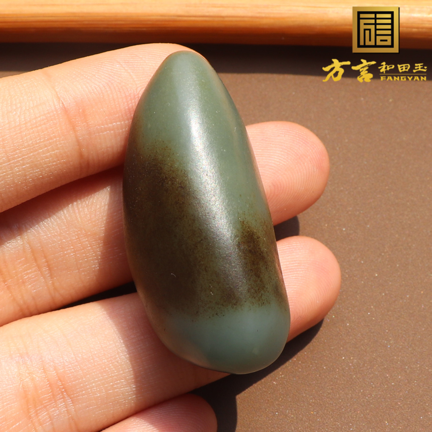 巨漏方言品牌和田玉特色鹿皮蓝色基调原生籽料意境原石玩料吊坠O