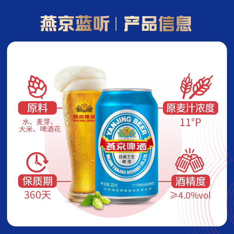 【推荐】燕京啤酒 蓝听330ml*24罐小罐装多规格 啤酒整箱特价批发