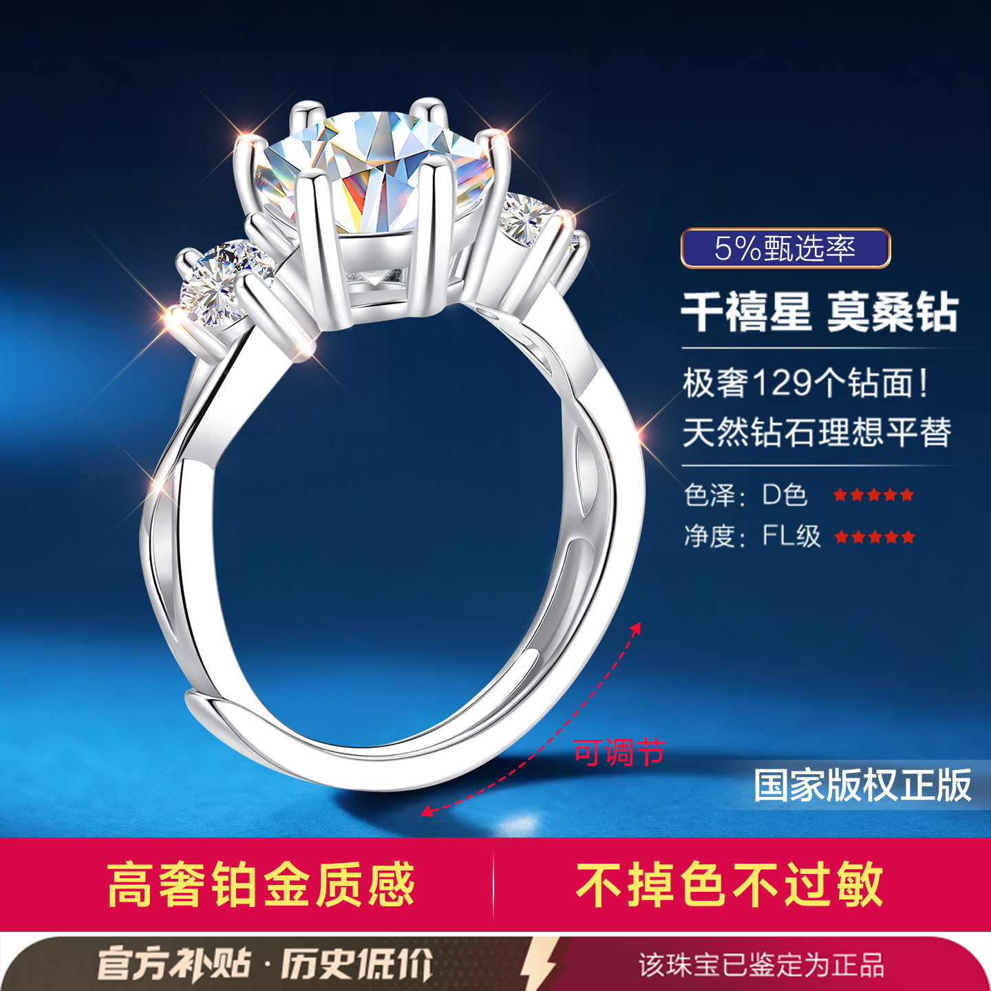 银戒指女士女999纯银2克拉莫桑石钻石莫桑钻钻戒轻奢小众情侣对戒