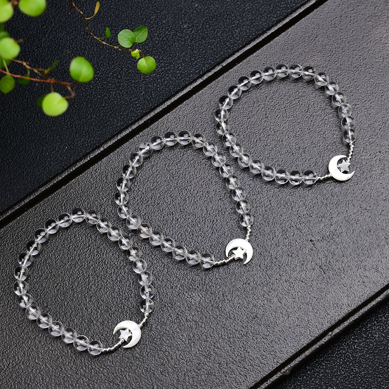 6mm天然白水晶月亮贝母纯银J星星手链 LH153