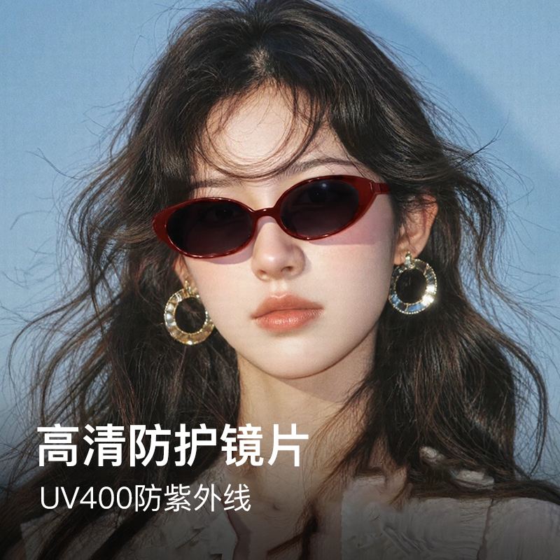 复古椭圆茶色小框猫眼墨镜女款偏光小脸高级感近视带度数太阳眼镜